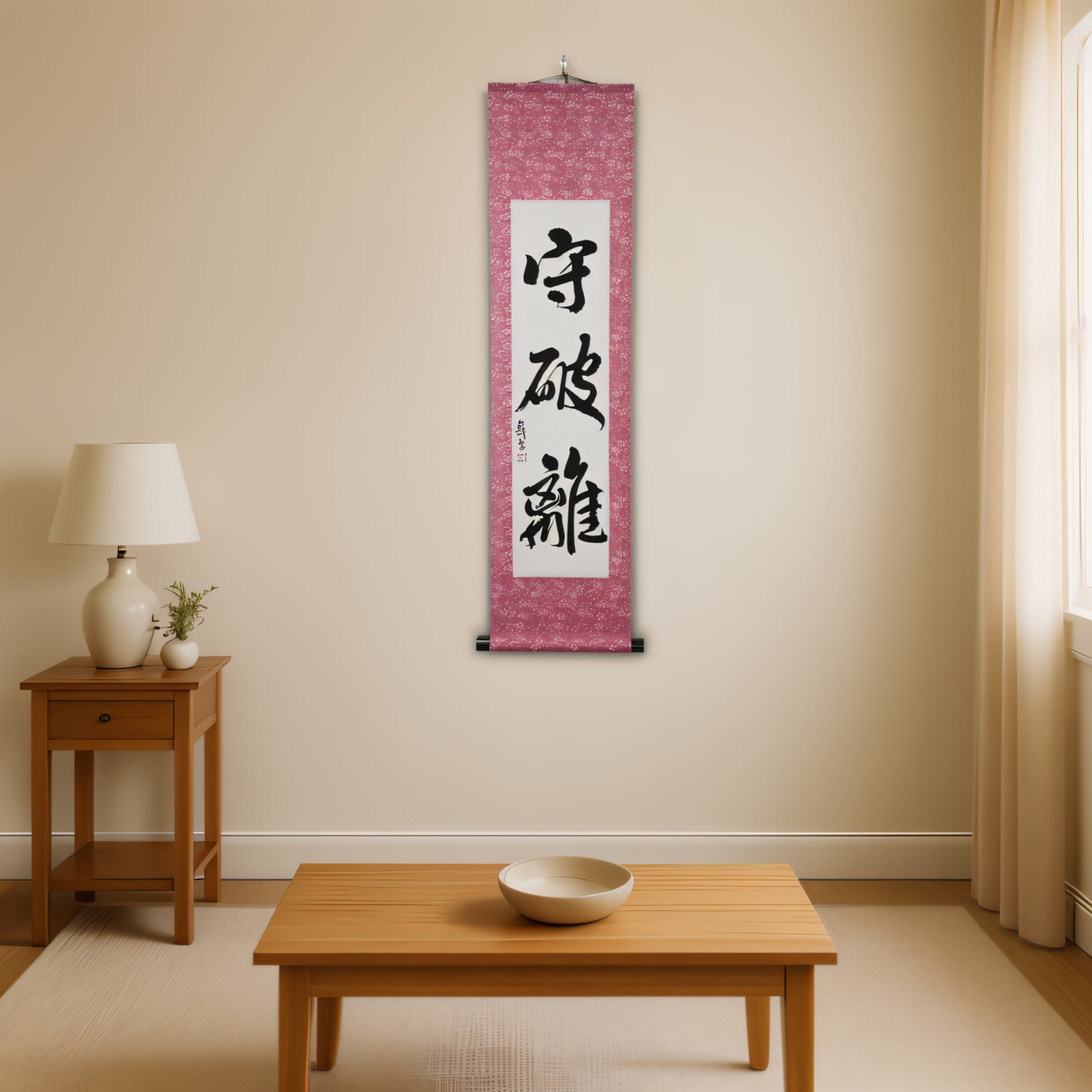 This Japanese calligraphy scroll features the timeless phrase 守破離 (Shuhari) — a profound teaching that captures the path of growth and mastery in all martial arts.